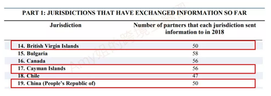 在2018年度,开曼已经通过CRS向56个国家(及地区)发送了非居民账户信息,包括中国。