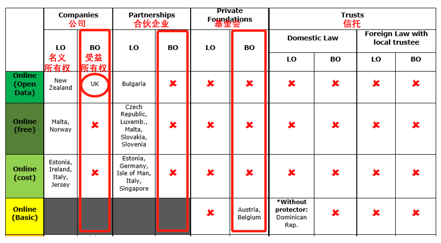 根据欧盟法令,执法部门和金融情报机构,获取信息不受限制,而公众至少可以查看受益人的姓名、生日、居住国、国籍以及持股信息。
