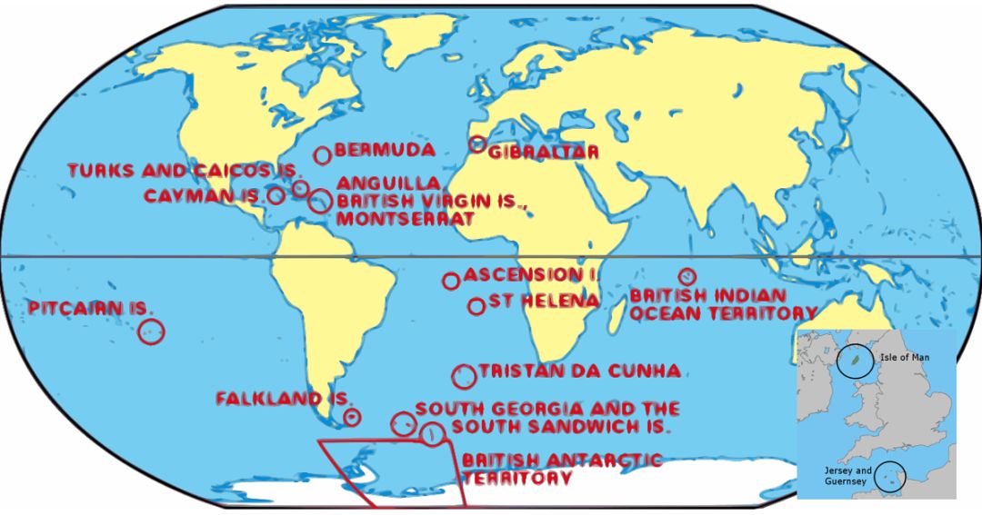 于是,2017年,英国强制6个海外领土(安圭拉、百慕大、直布罗陀、英属维尔京群岛、开曼群岛、特克斯与凯科斯群岛)和3个皇家属地(根西岛、泽西岛和马恩岛)签订了互换受益所有权信息的双边协议。