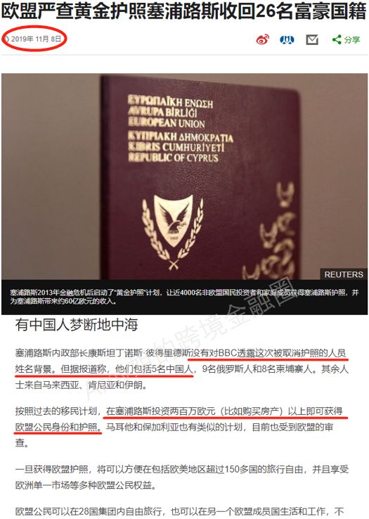 禁止出售?既然黑名单加点名都没用,近日,欧盟内部要求终止这种卖护照的模式。