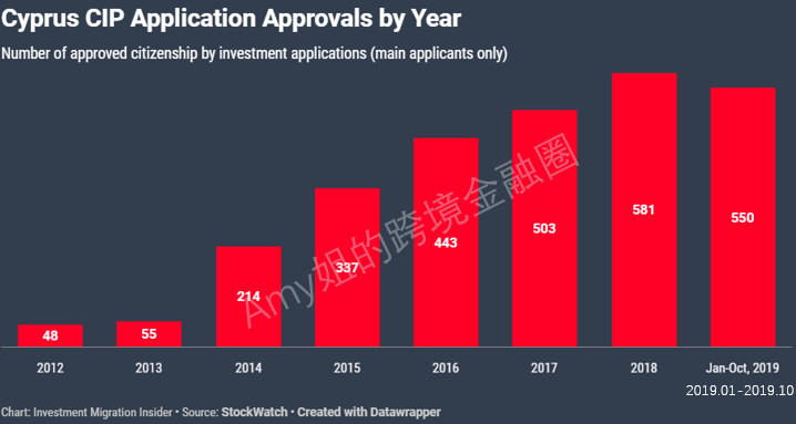从护照降价开始直到2018年,塞浦路斯政府共批准了近1900个公民身份申请。算上这些主申请人的家庭成员在内,一共发了超过3200本护照。黄金护照持续大热(中国富豪是第二大买家,仅次于俄罗斯富豪),塞浦路斯的GDP也上去了。